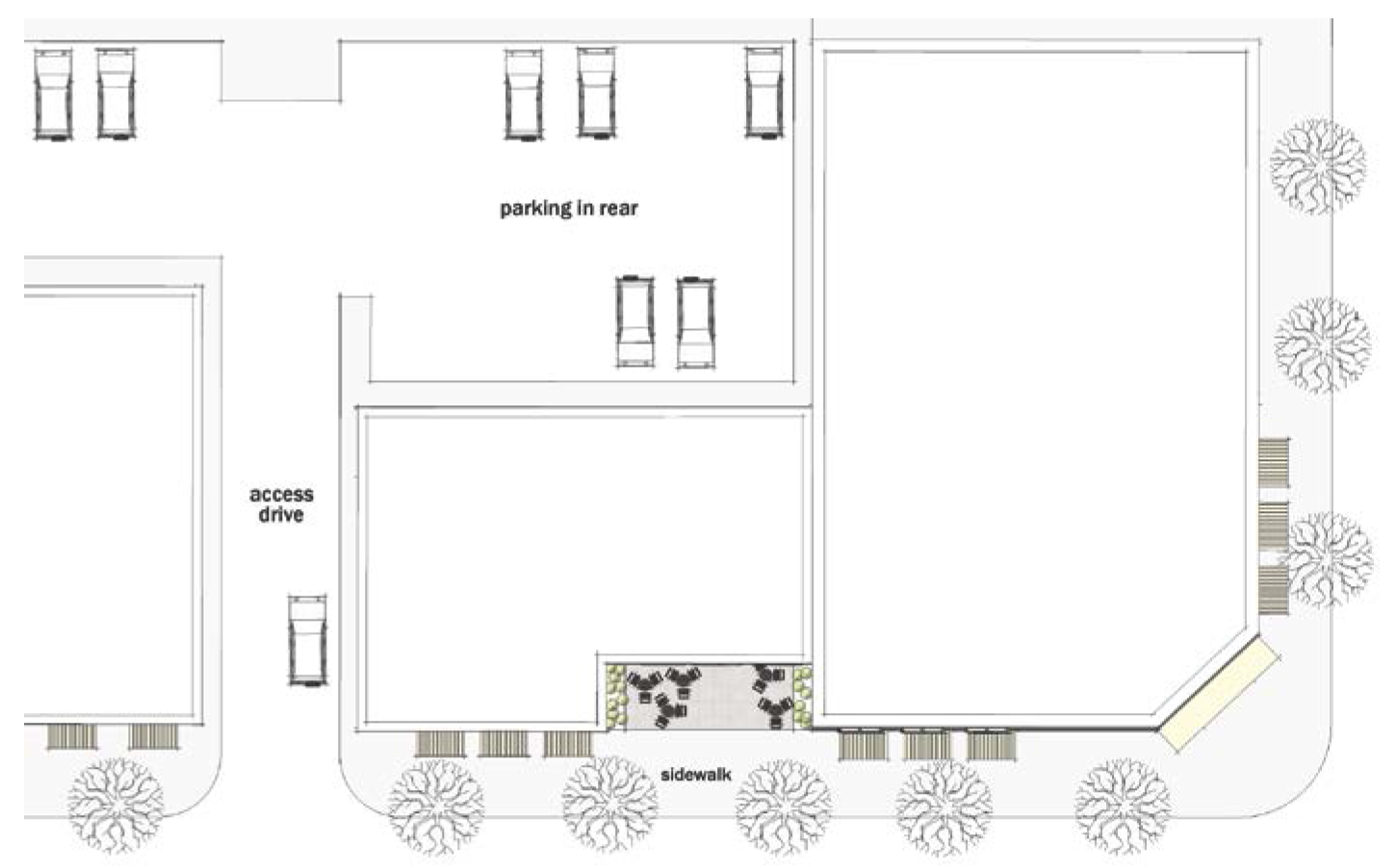 FIGURE 531-14. SURFACE PARKING LOCATED BEHIND BUILDING