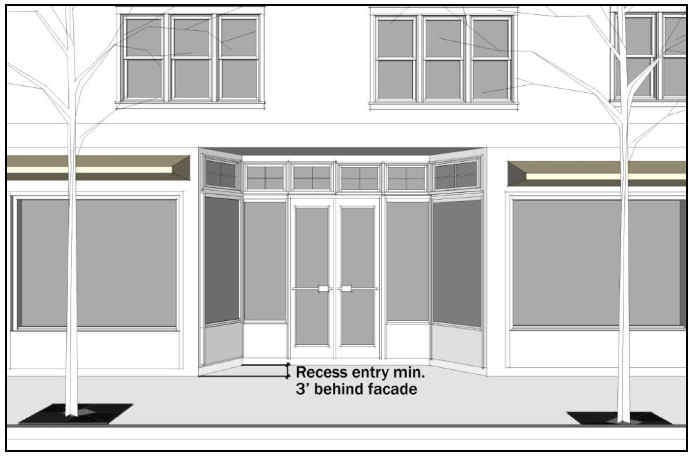 Be recessed into the building facade a minimum depth of three feet (see Figure 531-7).