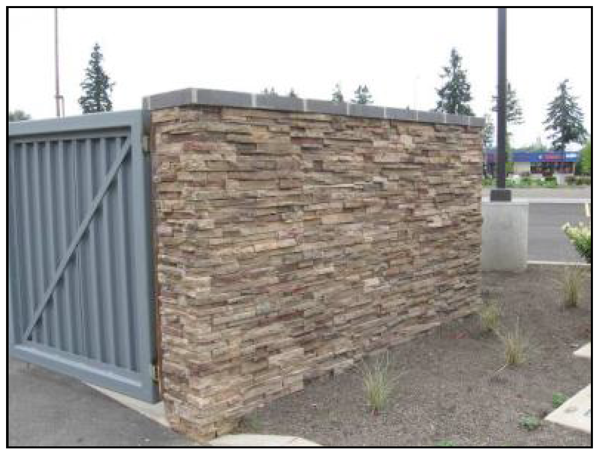 Ground level mechanical and service equipment, such as garbage collection areas, recycling collection areas, and mechanical equipment, shall be screened with landscaping or a site obscuring fence or wall (see Figure 531-8). Ground level mechanical and service equipment and its associated screening shall be located so as to not be visible from public sidewalks and open spaces.