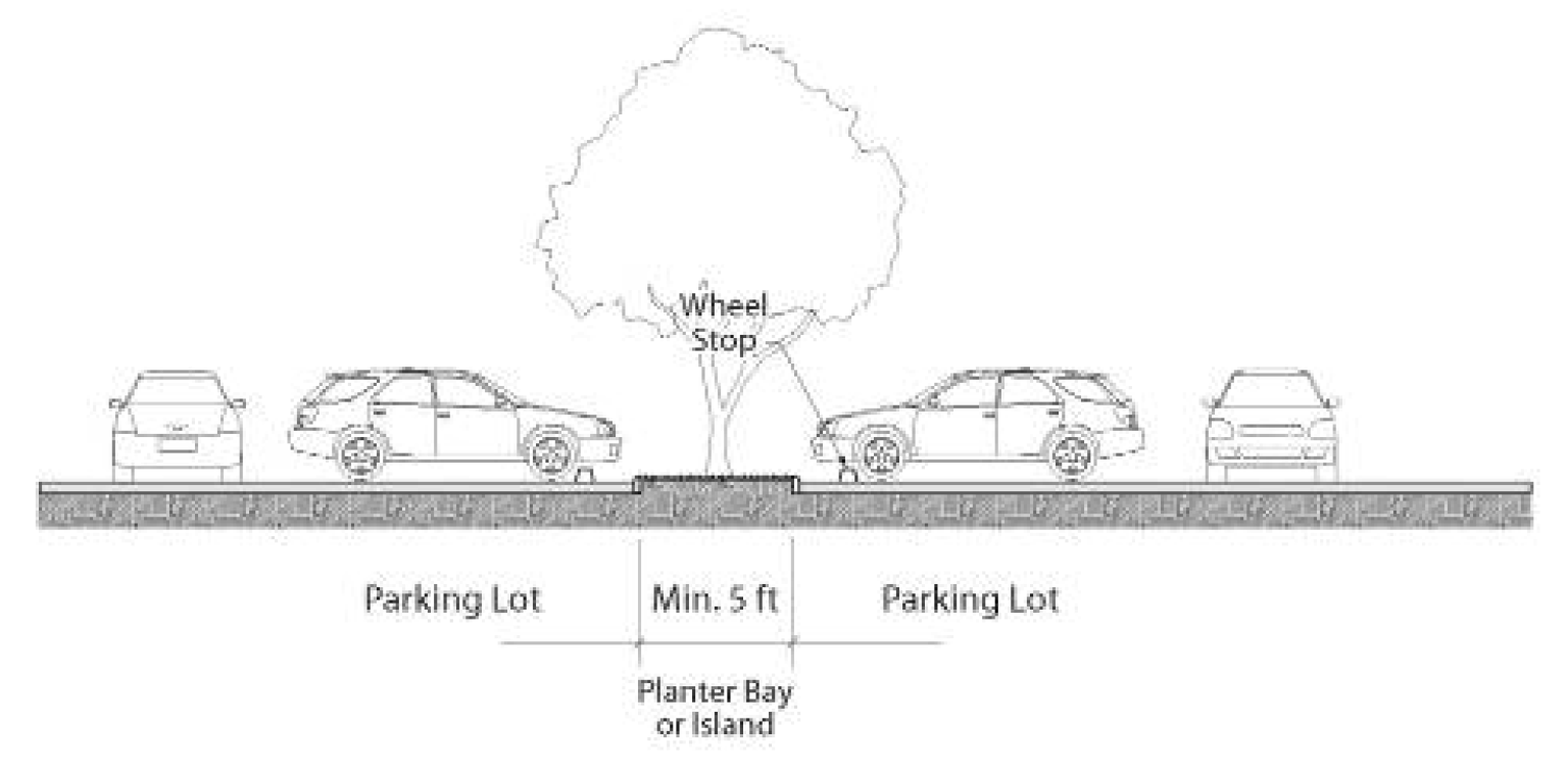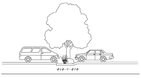 Planted in planting islands containing a minimum of three trees per planting island and the minimum required soil amount per tree type specified in Table 806-7;