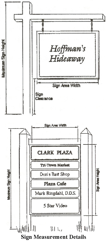 Location of Signs. The following setbacks for signs shall be met for street and driveway intersections: No sign shall be located within a "clear sight triangle" between the height of two (2) and ten (10) feet above the ground.