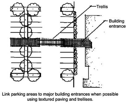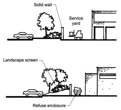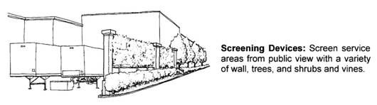 Whenever feasible, design and placement of buildings and other physical features are encouraged to maximize visibility and facilitate natural surveillance from public rights-of-way and other public areas. This includes building orientation, placement of windows, doors, and balconies, building and site entrances and exits, placement of parking, lighting, and refuse containers, placement and type of landscape materials, plazas, and other open space areas, location of walkways, types of walls and fences (including the use of picket, wrought-iron, and similar materials to promote visibility), and other features that promote crime prevention through environmental design (CPTED).