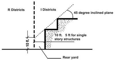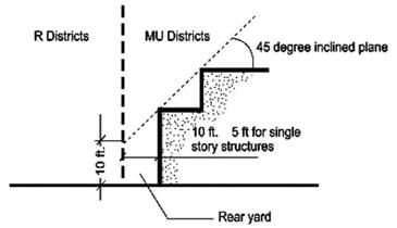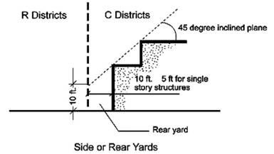 Interior side yard: four feet minimum back from front building facade, perpendicular to the facade of the dwelling unit,