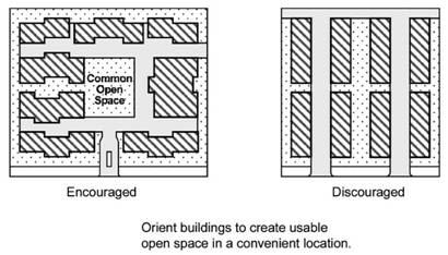 Housing Design and Orientation. New residential neighborhoods should orient buildings to streets and public parks.