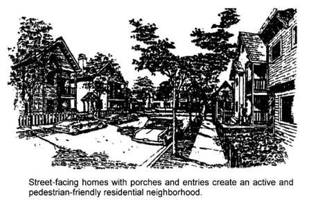 Encourage attractive and interesting single-family residential streetscapes and dwelling units that are pedestrian-oriented and reflect traditional neighborhood design principles; and