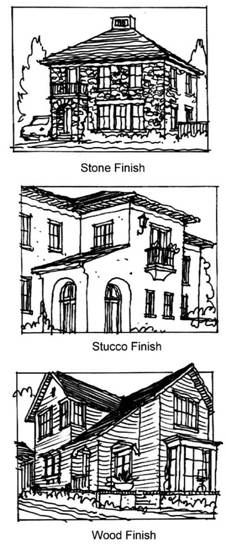 Materials. New buildings should support regional traditions and maintain a high level of craft in construction and materials. Exterior finishes should be primarily wood, masonry, and/or stucco. In general, imitation materials should be avoided in favor of genuine materials. Where this is not practical, materials (cement board siding, artificial stone, vinyl fencing, etc.) should be as close to their original models as possible.
