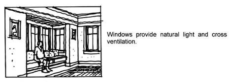 Windows. Windows should be compatible with the building design. Window placement should provide each primary room with natural light and effective cross ventilation.