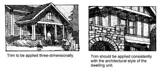 Trim should be appropriately scaled to the size and style of the dwelling unit.