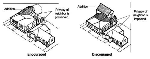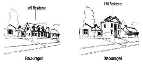 The rooflines and pitches of accessory structures shall be compatible and harmonious with those of the principal structure. Flat roofs are discouraged unless appropriate to the architectural style of the principal structure.