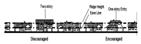 Planting masses on-site should assume a simple, non-uniform arrangement. The diversity of massing types should be great enough to provide interest, but kept to a level which evokes a relaxed natural feeling.