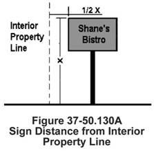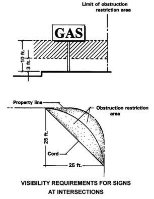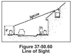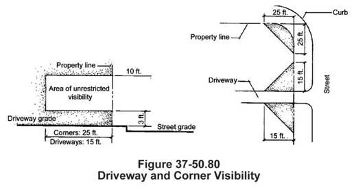 Visibility Triangle. The feature shall not be located in an area of unrestricted visibility as defined by Section 37-50.460: Driveway and corner visibility.