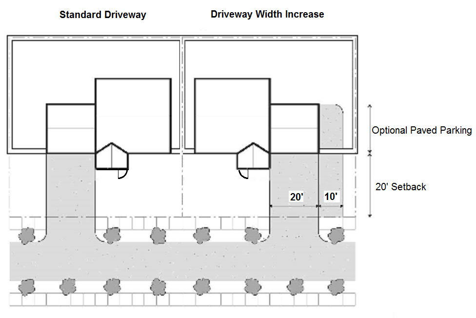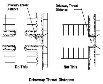 A minimum of fifteen feet from the intersection of a driveway (for commercial, mixed use, or public/semipublic and industrial uses) with a street right-of-way to the center of any tree having a diameter larger than eighteen inches at maturity or large shrub and a minimum of ten feet for residential uses.
