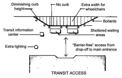 Use landscaping planters to control access to parking lots, to make traffic diverters prominent, to direct the flow of traffic within the lot, and to enhance the safety of parking lots by guiding the circulation of vehicles and people.