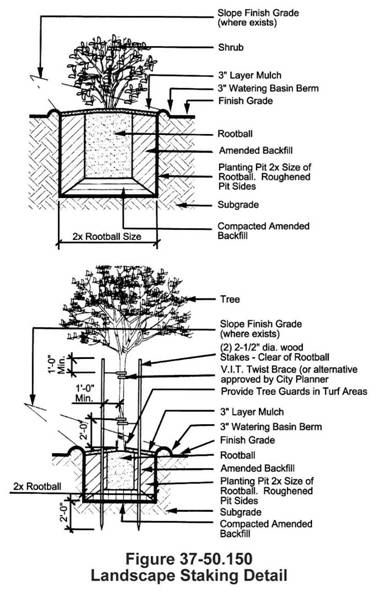 Trees and bushes shall be staked as shown in Figure 37-50.150.