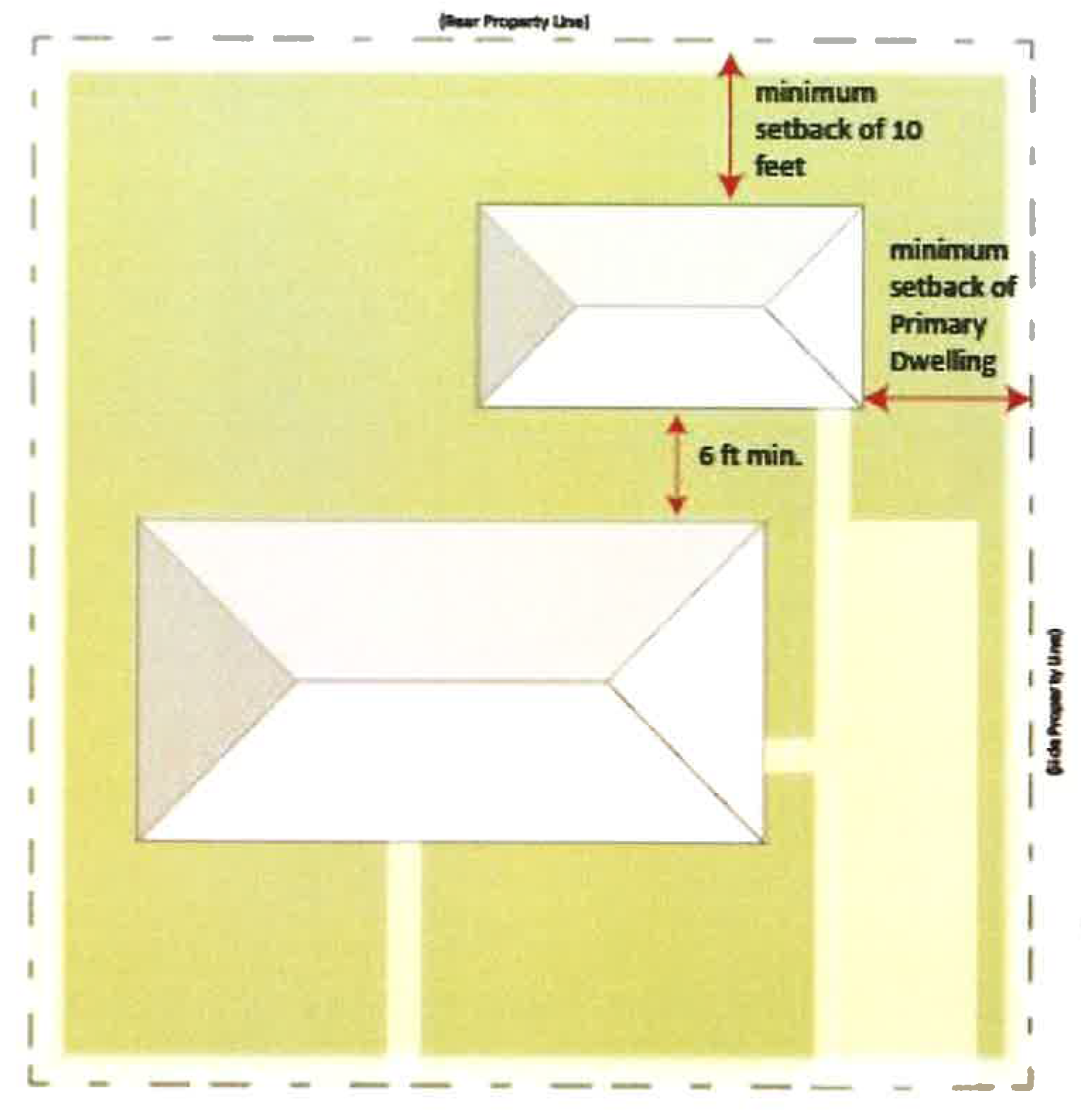 Figure 19.15.1: Setback Standards for a Detached ADU Built After Adoption of this Chapter.