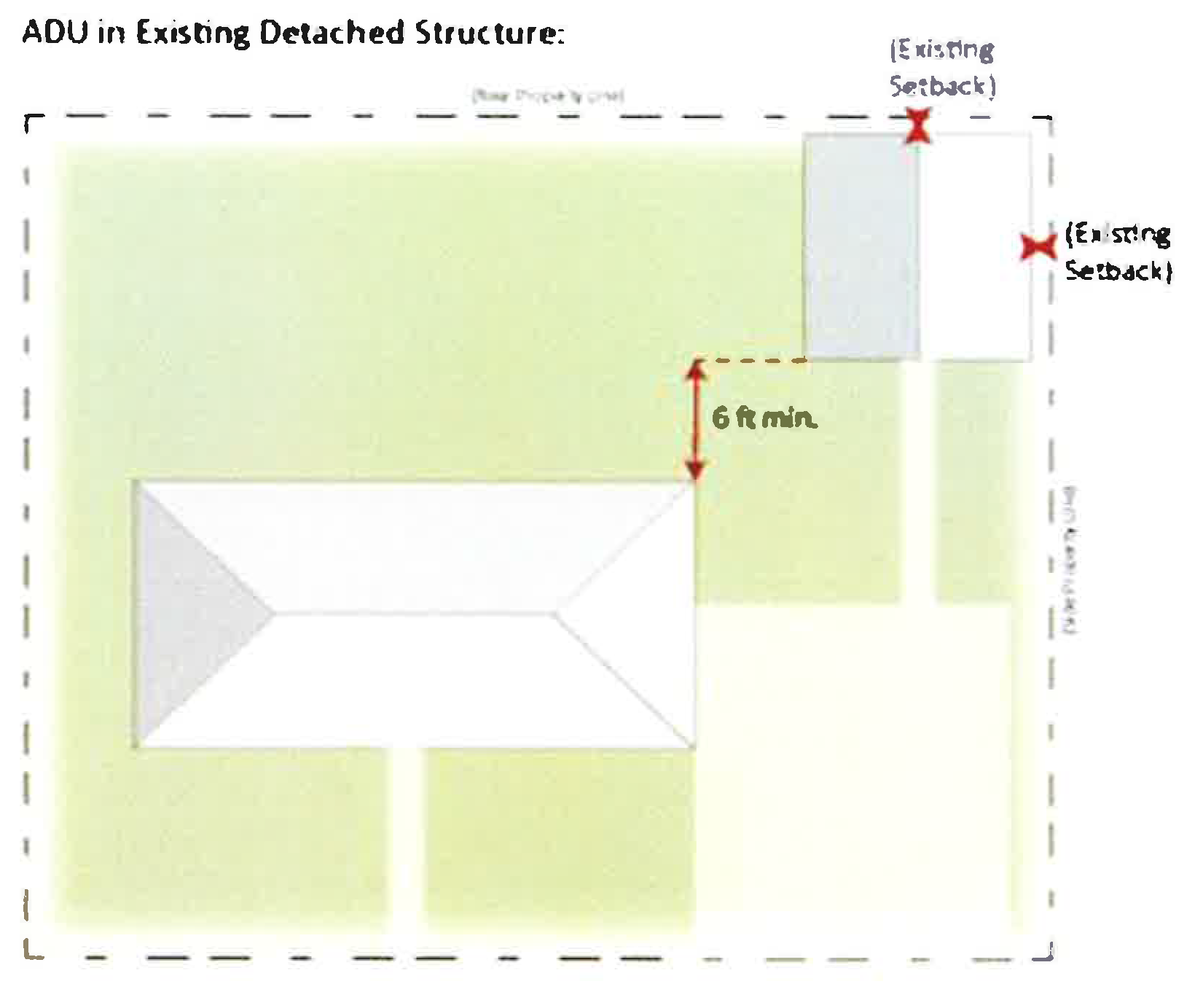 Figure 19.15.2: Setback Standards for an Existing Accessory Structure Built Prior to the Adoption of this Chapter and Converted to a Detached ADU.