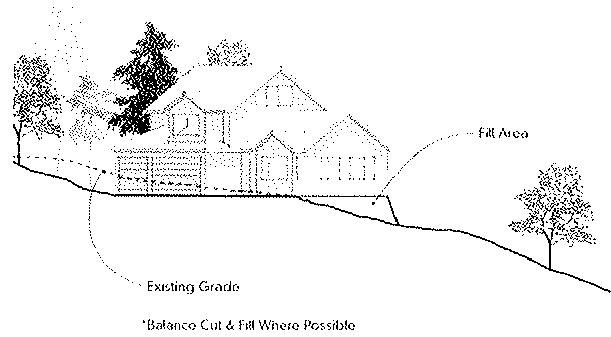 Encourage development that conforms to the natural contours of the land and minimizes the scarring and erosion effects of cutting, filling and grading on hillsides, ridgelines, and steep slopes.