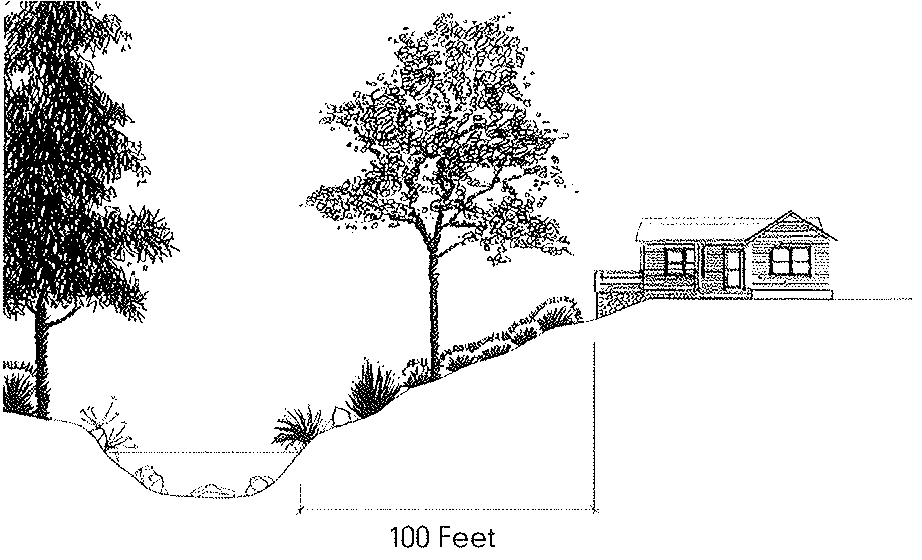 Areas consisting of natural ponds, streams, trees, and other vegetation where no grading work is done.