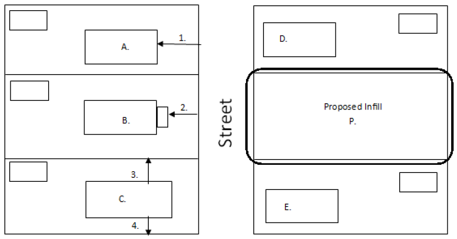 Properties within the map illustrated approved boundary referenced in Section (2) (A) for each designated corridor.