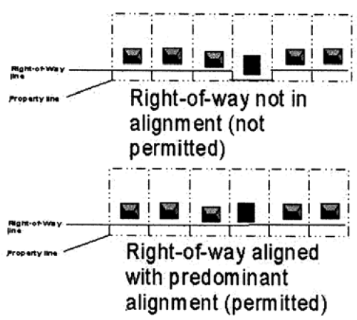 An improved pedestrian walkway from the front property line to the main customer entrance shall be provided. The improved pedestrian walkway may be constructed on concrete, crushed granite, pavers, weather resistant boards or similar materials. The improved pedestrian walkway shall be separated from parking stalls and drives with native landscaping.