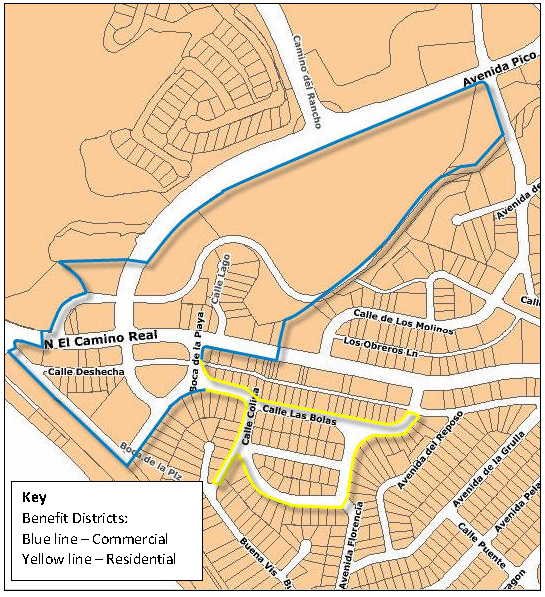 Projects on properties along North El Camino Real between West Avenida Palizada and Calle Los Bolas, and on South El Camino Real between Avenida Rosa and Interstate-5 that may have Spanish Colonial Revival architecture or a true form of another Spanish architectural style, such as Mission, Monterey, or Mediterranean.