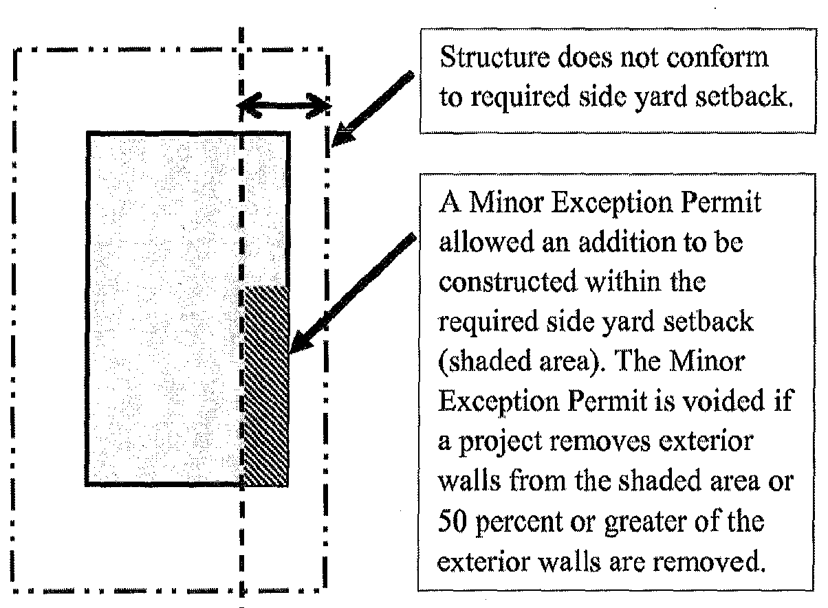 Exception for single-family dwellings less than 1,400 square feet. Nonconforming single-family dwellings, smaller than 1,400 square feet, may be expanded to a maximum of 2,100 square feet without modifying parking, provided that a Minor Exception Permit is approved. For approval, the Zoning Administrator must find: the proposed Minor Exception Permit is necessary for the general appearance of a project to be in character with the neighborhood. The general required findings shall also be met for the approval of a Minor Exception Permit per Section 17.16.090.