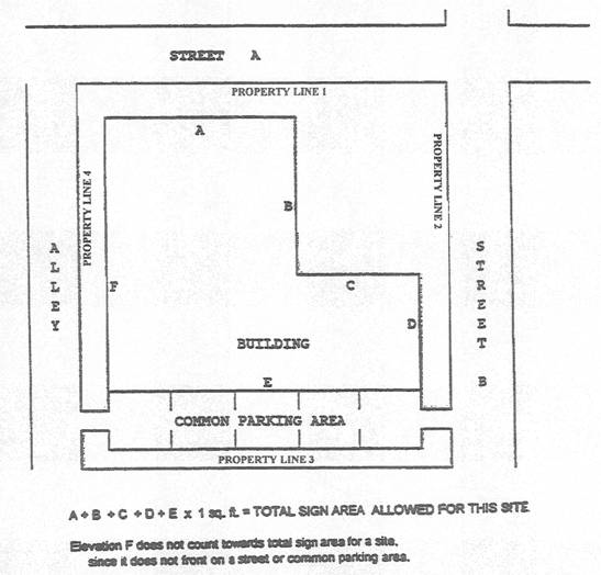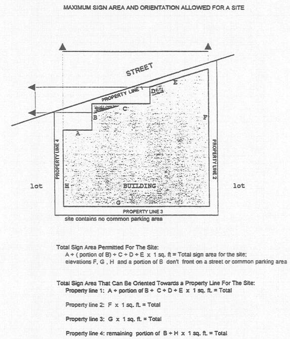 Maximum Sign Area Oriented Toward Any One Property Line of a Site, Common Parking Area, Pedestrian Area, Driveway or Alley.