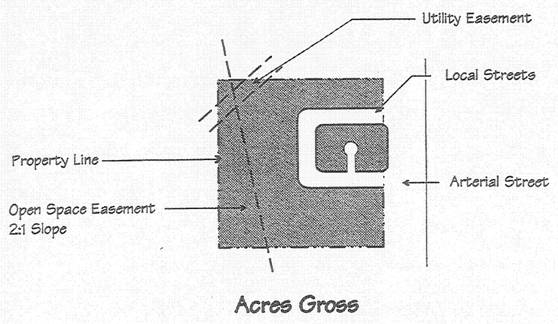 Acres, Gross. "Gross acres" means the total number of acres within the subject area, including local street rights-of-way (either existing or to be dedicated), but excluding arterial street rights-of-way (either existing or to be dedicated).