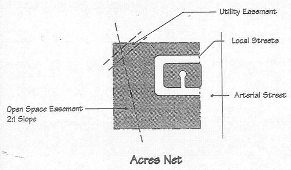 Acres, Net. "Net acres" means the total number of acres created within the subject area once local street rights-of-way (either existing or to be dedicated) have been subtracted from the gross acres.