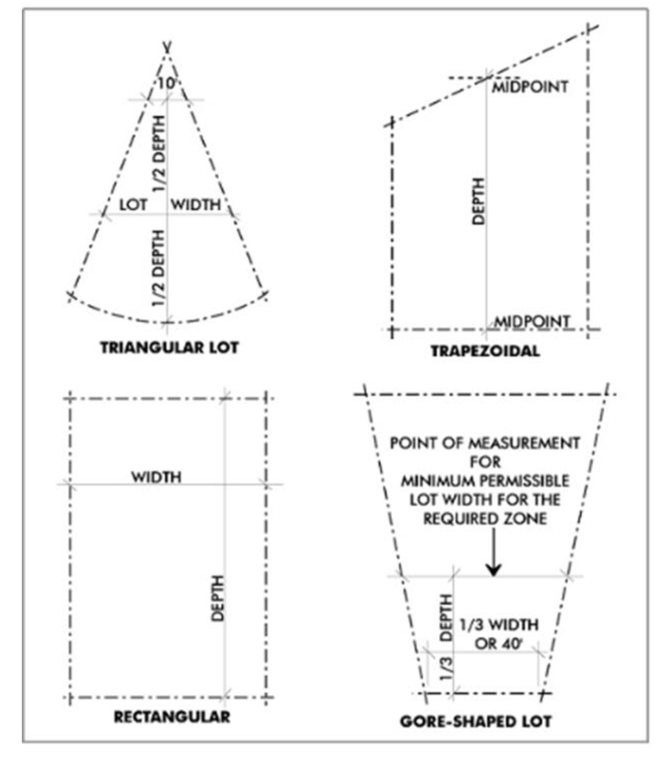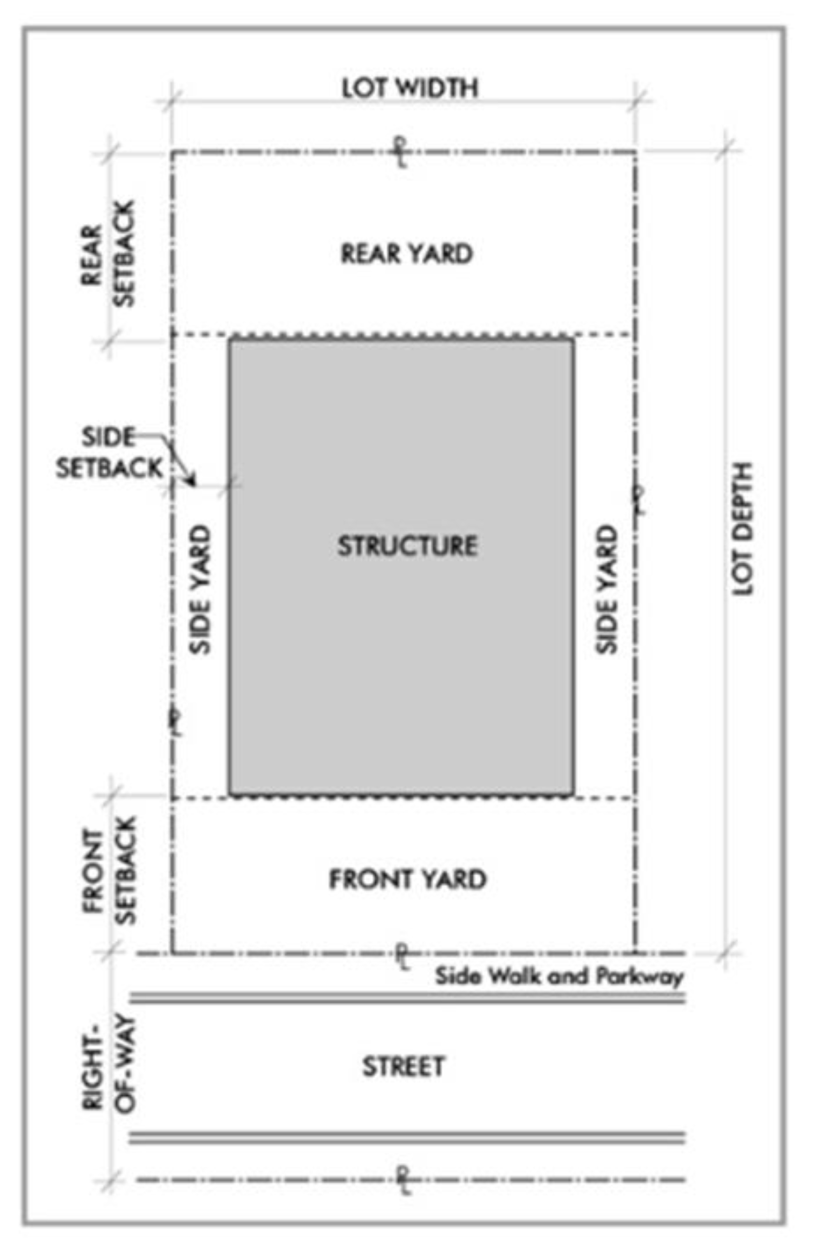 Yard, front means the space extending the full width of the lot between the front lot line and a line parallel thereto, and having a distance between them equal to the required front yard depth as prescribed in each zone.