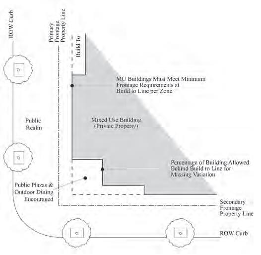 Setbacks and build-to line standards are required in the identified locations.