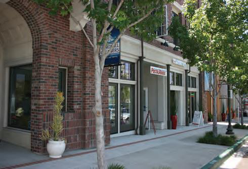 Use of glazing, awnings, and individual storefront entrances reinforces the pedestrian-orientation