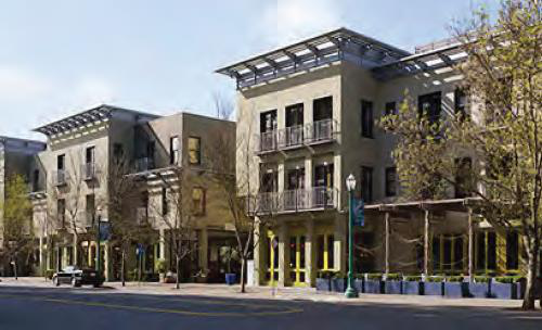 Pedestrian-oriented development with active ground floor uses and residential above
