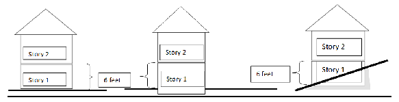 "Story" means any floor having its finished floor surface entirely above grade and at least six (6) feet in height; or any floor that is partially below grade and where the finished surface of the floor above it is at least six (6) feet above the lowest grade: