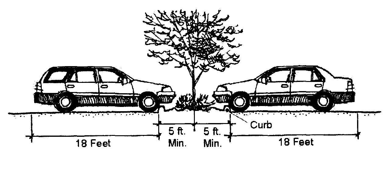 Width of Curb Openings. In determining the width of curb openings and spacing of driveways, the end transitions in each case will not be considered a part of the width of the curb opening. The curb opening or width of each driveway shall be defined as the throat width of the driveway at the inside point of the curb transition radius at the top face of the curb.