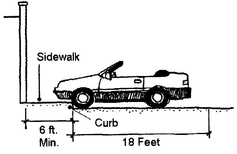 Parking spaces (not including parallel spaces) may be reduced to 18 feet in depth based upon the following exceptions: