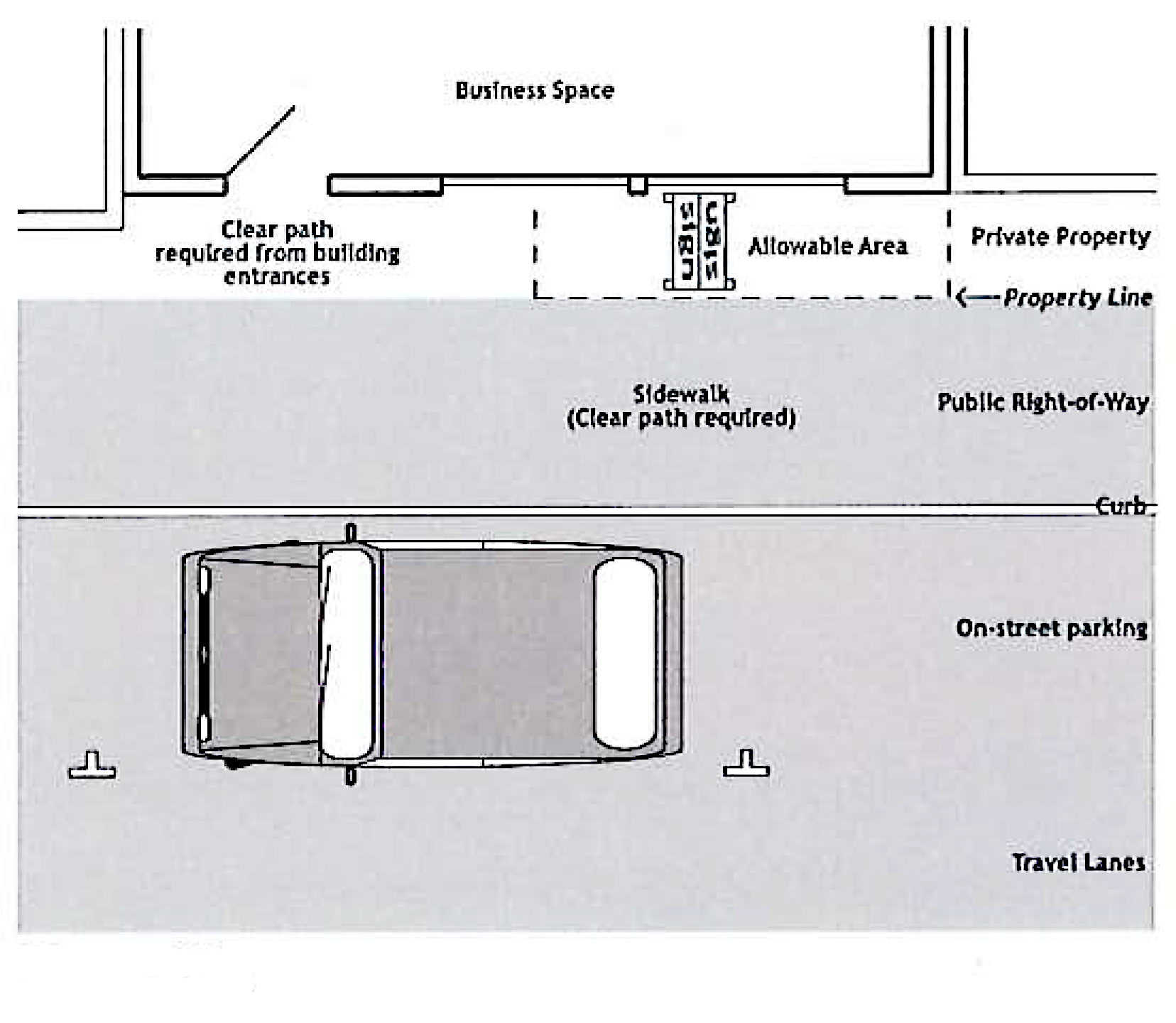 At any location whereby the clear space for the passageway of pedestrians is reduced to less than six feet.