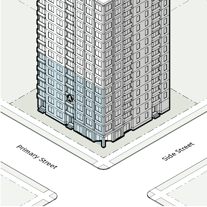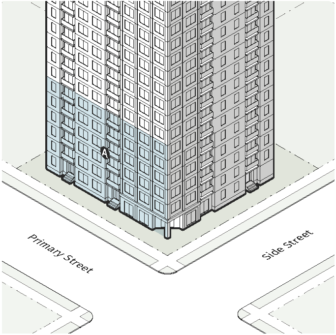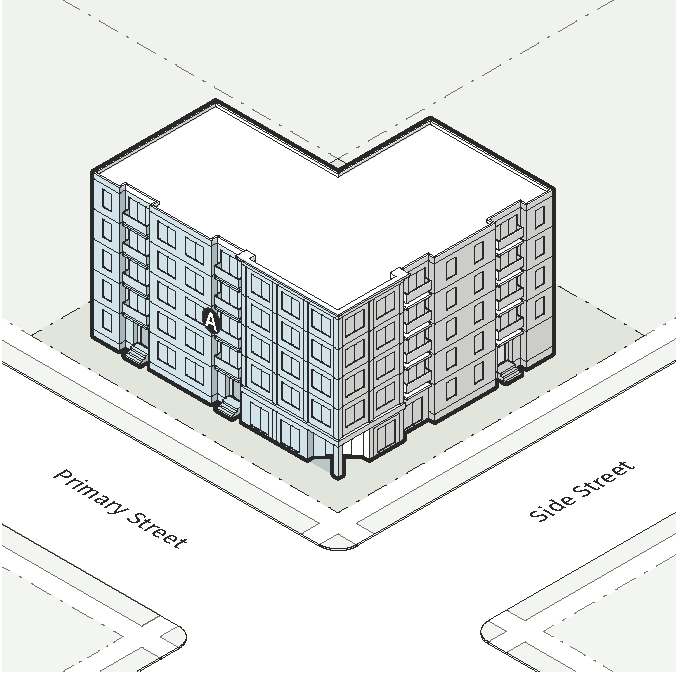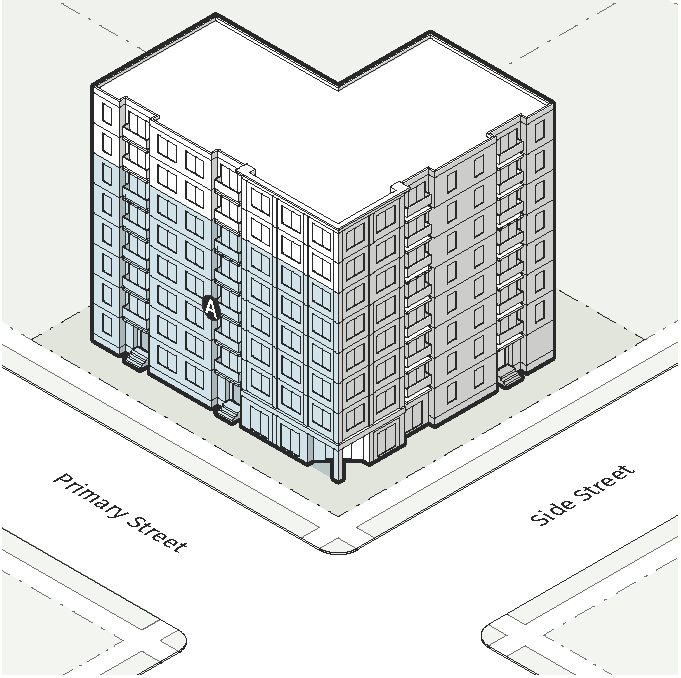 The Perimeter Residential District is intended for residential living in attached single unit and multi-unit residences. The district also allows for limited commercial, and for civic, open space and park uses. Where these districts abut Protected Neighborhood Districts, a transition area is required. The districts include: