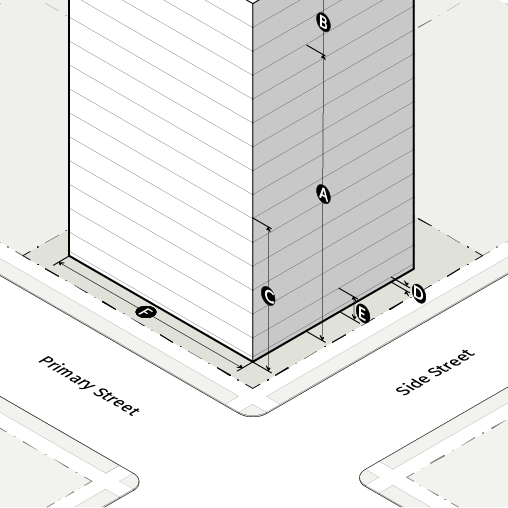 PX-20/35: Perimeter Mixed Use 20 stories maximum base height, up to 35 stories with bonus.