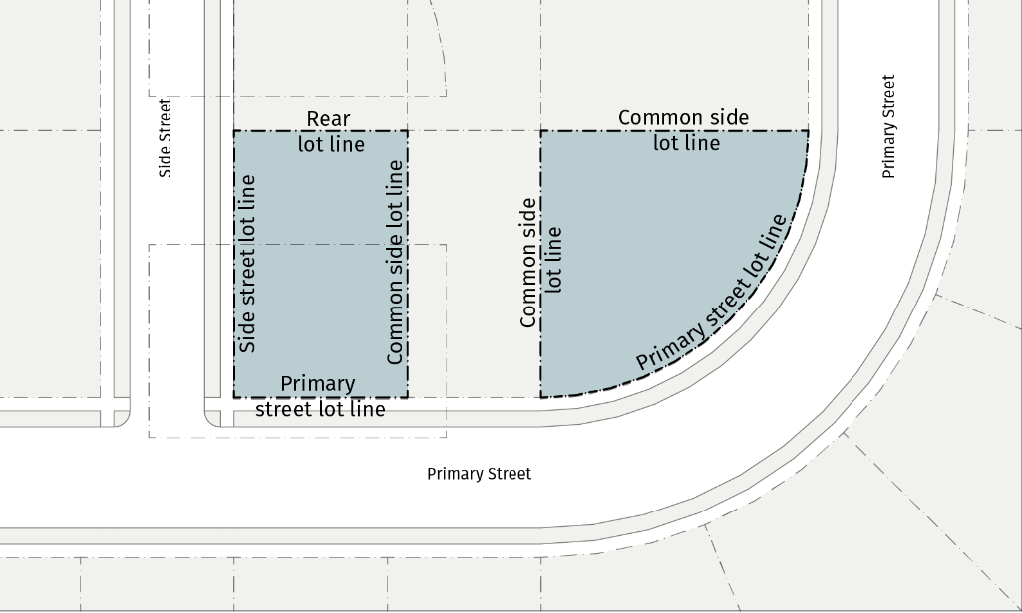 Lot Lines Each lot line must have a designation of primary street, side street, common side or rear as follows.