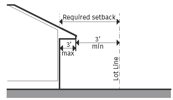 The garage or carport must be positioned no more than 30 feet in front of the front wall plane of the house;