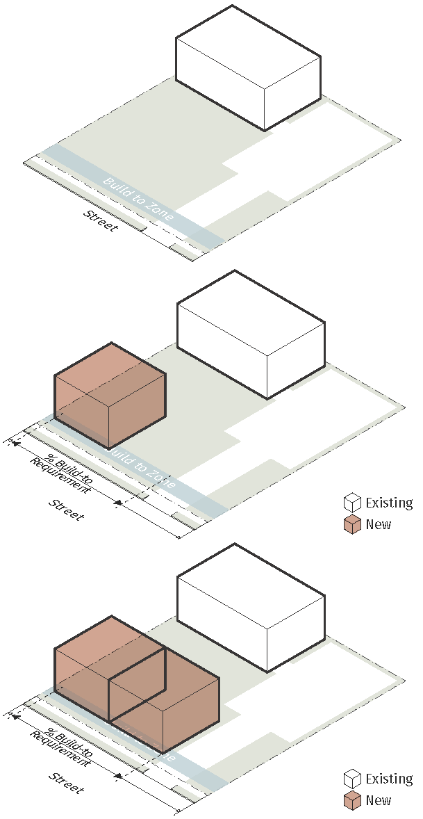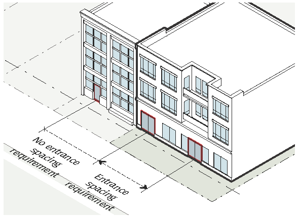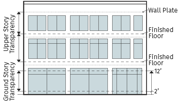 Commercial-Ready Space Where required by the zoning district or use, the ground story must be constructed to meet or exceed the minimum requirements for ground floor elevation, ground story height, transparency, and entrance spacing required for a retail or commercial use. Commercial-ready space is allowed to be occupied by any use allowed in the zoning district.
