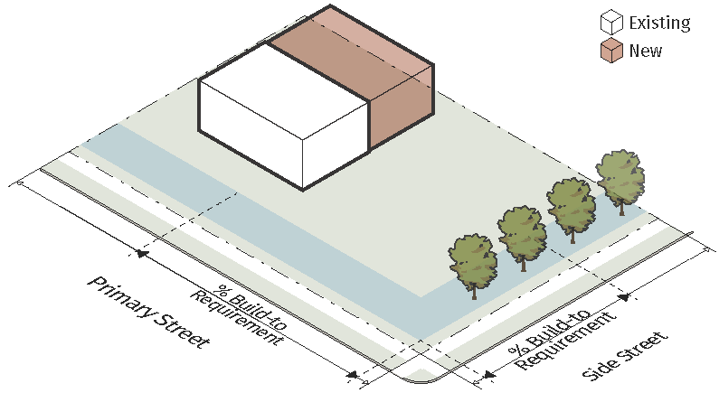 All buildings in Corridors & Nodes Districts; and