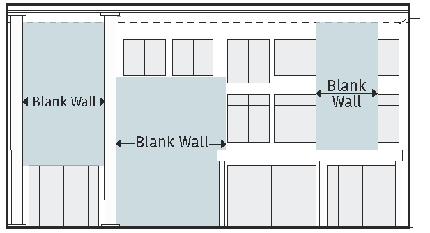 Exempt Exterior building walls, decorative elements, parapets and cornices are exempt from the architectural treatment requirements when they meet the following conditions: