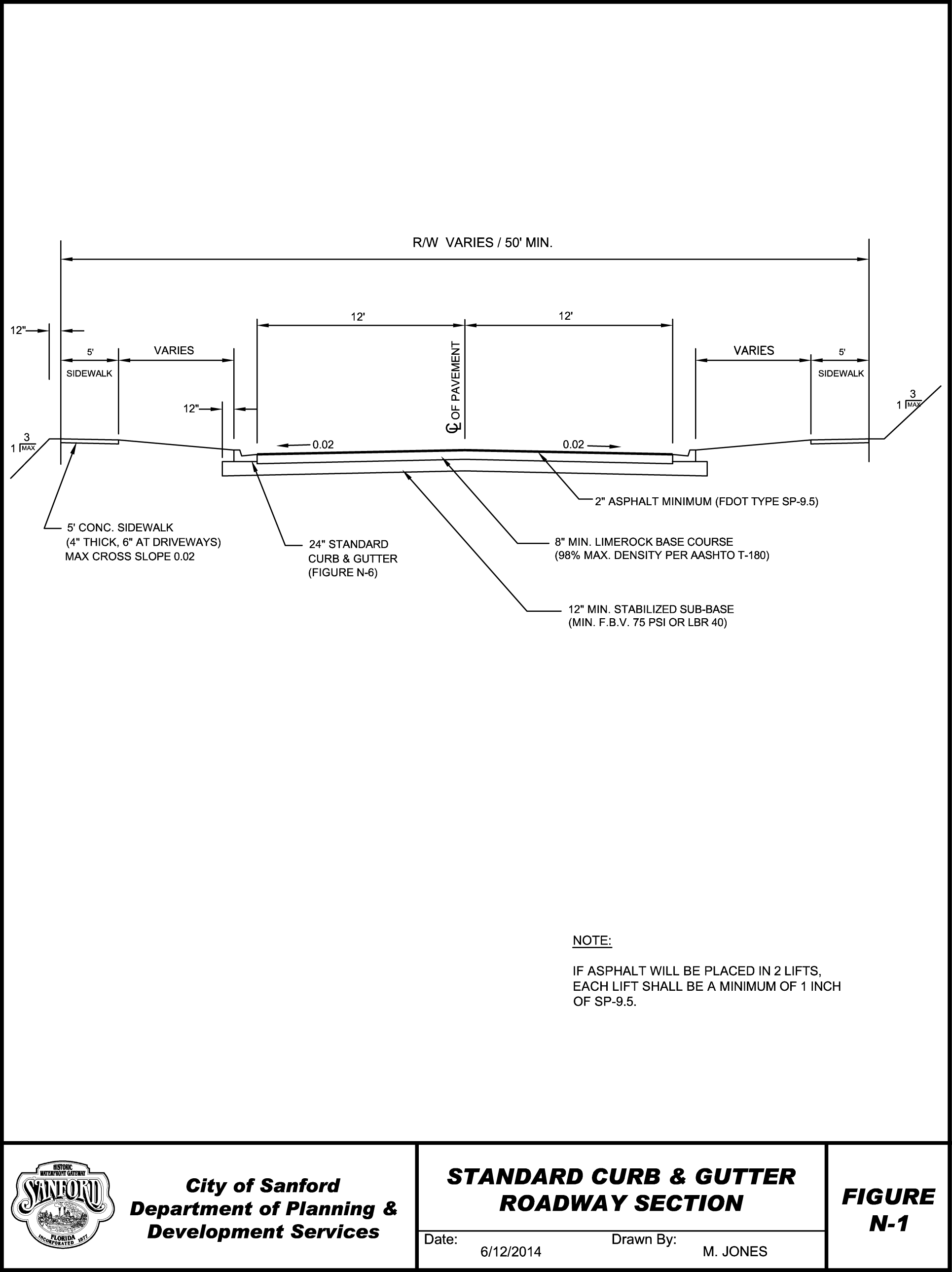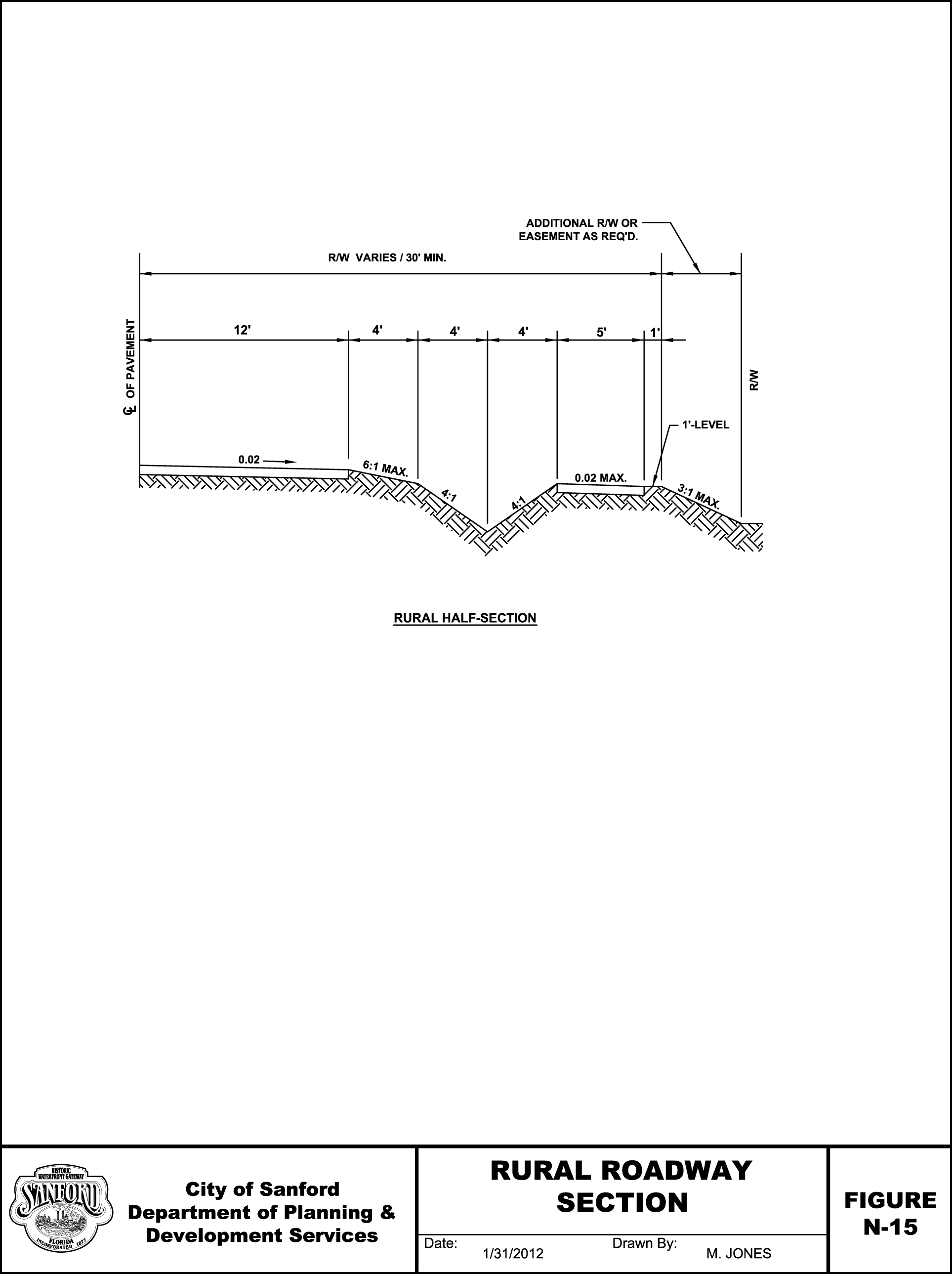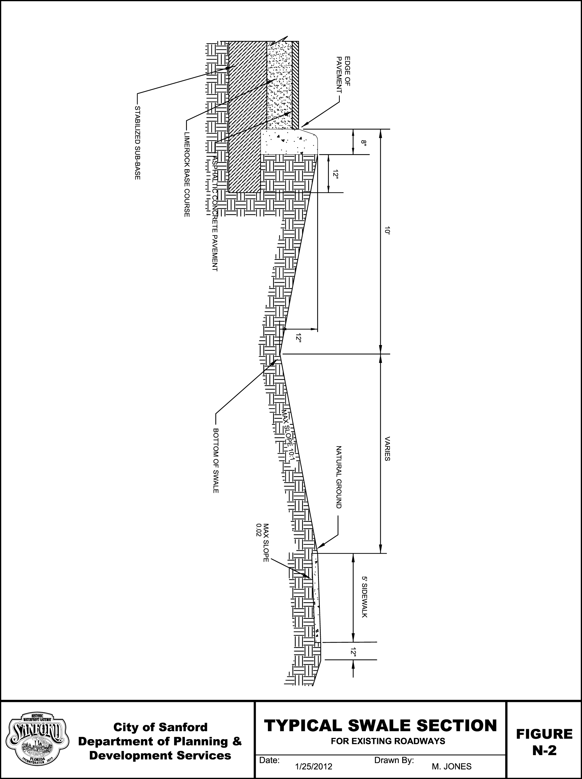 Urban and Rural Streets. Streets in the City shall utilize urban-type design features with a "closed" drainage system including gutters, inlets and Miami or raised curbs. New rural-type street design features with an "open" drainage system including open swales are prohibited. Typical details of urban street sections are reflected in Figure N-1. Local streets shall not be superelevated, but shall utilize a standard crown. Alleys may use an inverted crown.