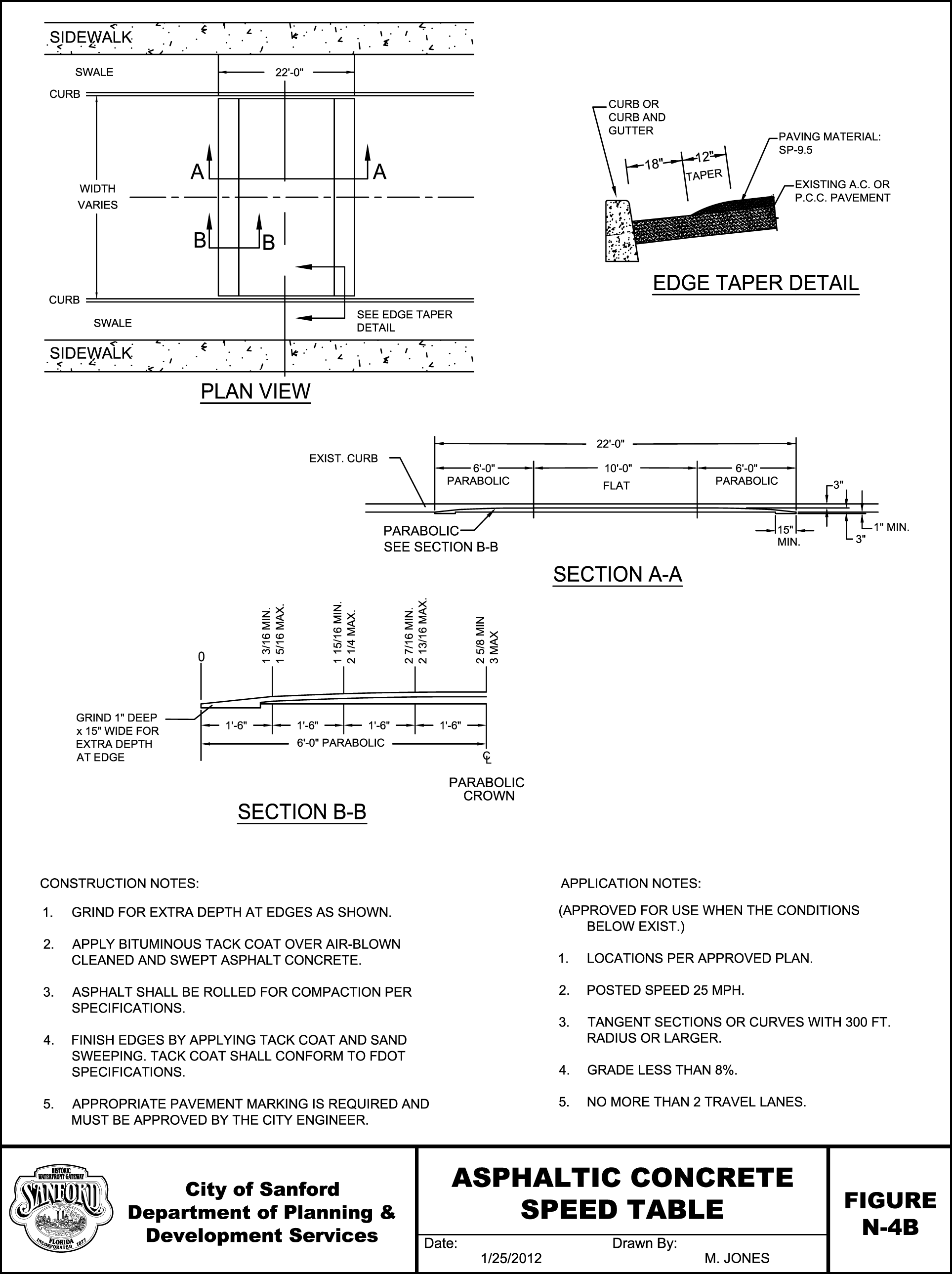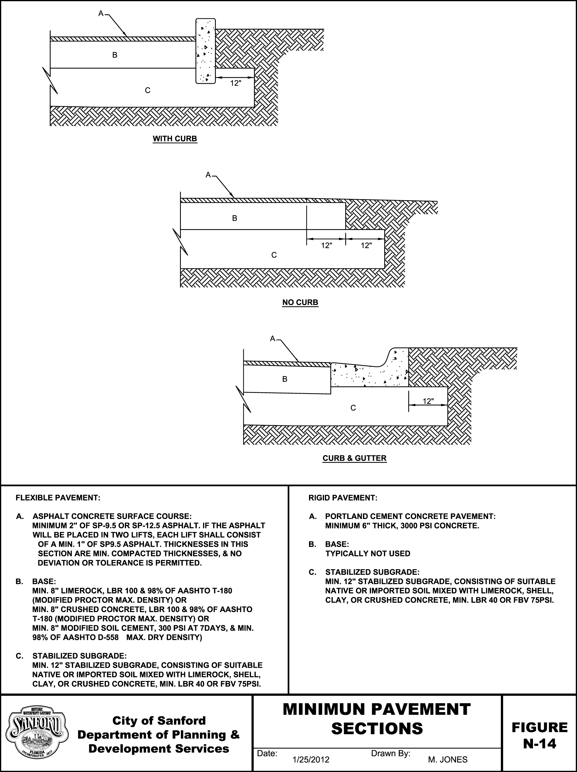 Pavement Types and Thickness. Surface courses shall be a minimum of 2" thick and comprised of SP12.5 or S-I compacted asphaltic concrete. The developer shall install a minimum of one (1) inch of SP9.5 or SIII asphaltic concrete prior to the construction of the development. After the last unit is constructed or upon direction of the Administrative Official, the developer will remove the asphalt and install 2" of SP12.5 or S-1 asphaltic concrete. The developer is responsible for maintenance of the roadway and stormwater drainage during this time frame. A performance bond in the amount of 110% of the cost of installing the 2' of SP12.5 asphaltic concrete must be provided in a form acceptable to the City. In cases where there will be no significant loading/unloading, turning of construction vehicles or use of cranes or other damaging construction equipment, the Administrative Official may approve a single lift of 2" of SP9.5, SP12.5. S1 or SIII. Upon completion of the 2" paving the developer shall provide a maintenance bond for the roadway for 3 years at 20% of the certified cost of construction in a form acceptable to the City.