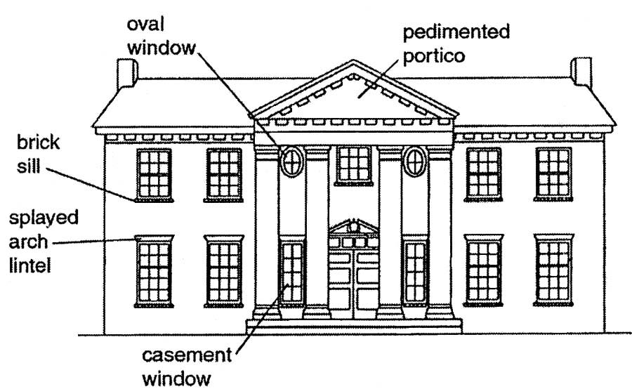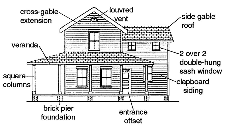 • Symmetrical—Balanced, symmetrical facade; most commonly of simple square or rectangular plan with hipped roofs.