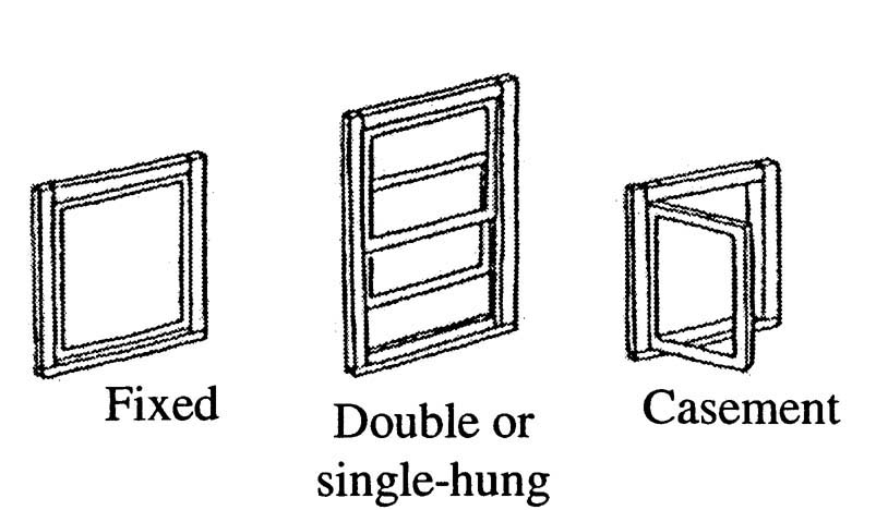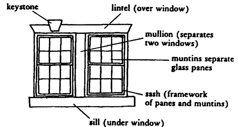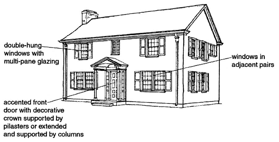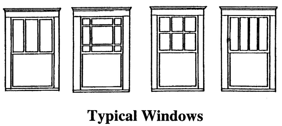 • Windows are usually deeply recessed into the masonry wall and have only a single pane of glass per sash.