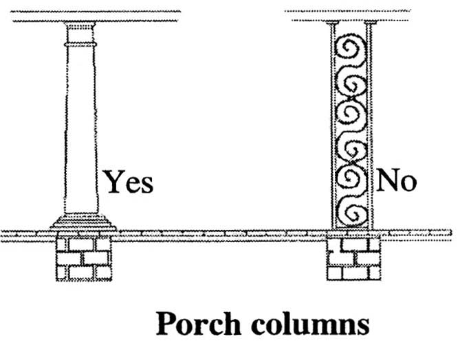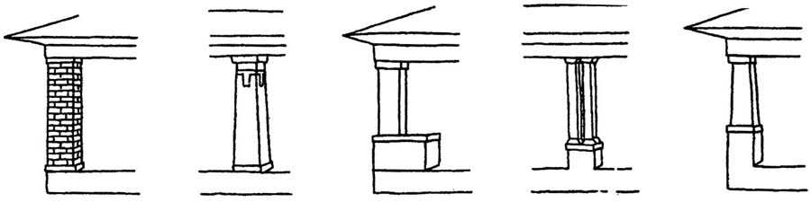 • Massive square or rectangular piers of masonry used to support porch roofs.