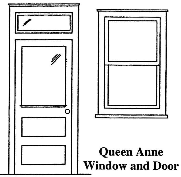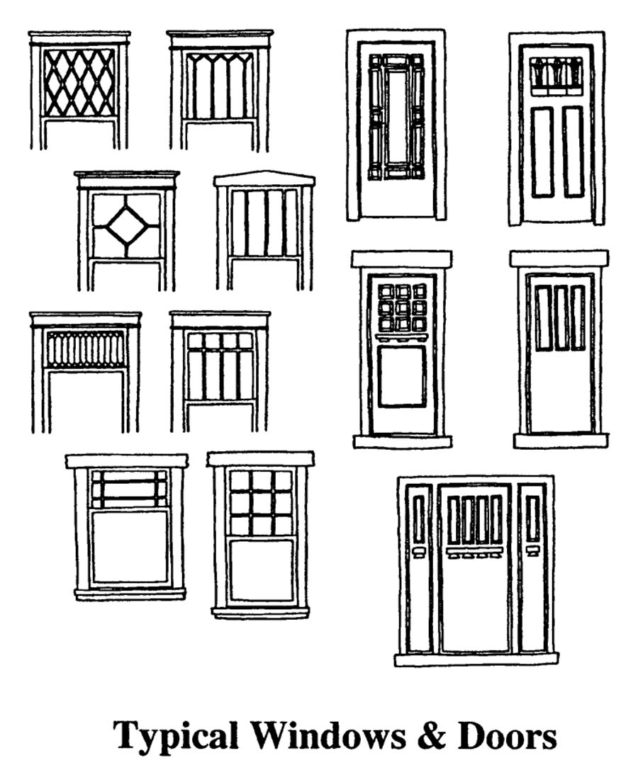 • Tall casement windows with geometric pattern of small-pane window glazing (in leaded casement windows, or upper sashes of wooden muntin, double-hung windows).